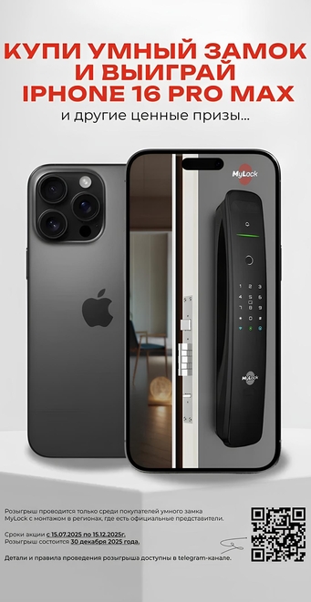 С 15 июля по 15 декабря 2025 года, приобретая умный замок MyLock с профессиональной установкой в регионах, где присутствуют наши официальные представители,